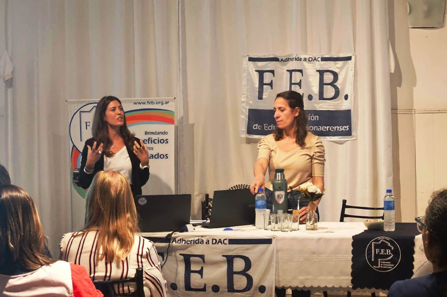 La presidente de la FEB Liliana Olivera y el vicepresidente Ezequiel Majul, participaron ayer en Suipacha de la Jornada “Cómo acompañar a los niños con autismo en el espacio escolar”, a cargo de la Lic. Carolina Donato y la Lic. Juliana Pilotto, destinada a los docentes del distrito.