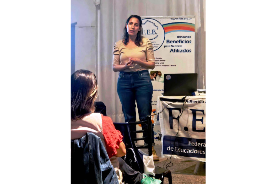 De la Jornada participaron también los integrantes del Consejo Directivo de la FEB Patricia Carreto y Roberto Eyras (Delegados de Zona 3); Paula Repetto (Área de Jornadas); y Nadia Malvestiti, Santiago Gómez, Laura Bertone, Claudia Blanco y Ulises Núñez (referentes del Área Gremial).
