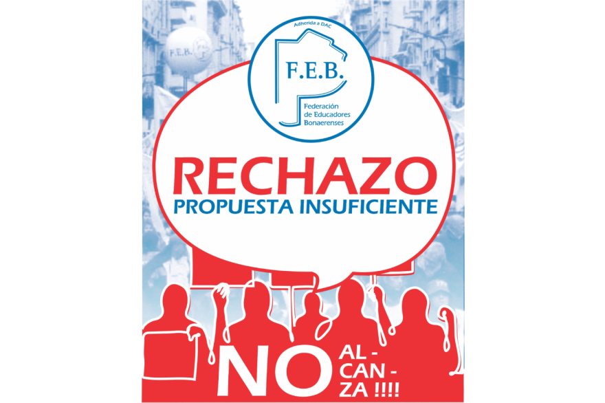 La FEB rechazó esta tarde en Paritarias la última propuesta de incremento salarial presentada por el gobierno de la provincia de Buenos Aires, consistente en un incremento retroactivo del 1% al mes de diciembre 2025, con su correspondiente impacto en el Aguinaldo, y un aumento del 2% a partir de enero 2026.